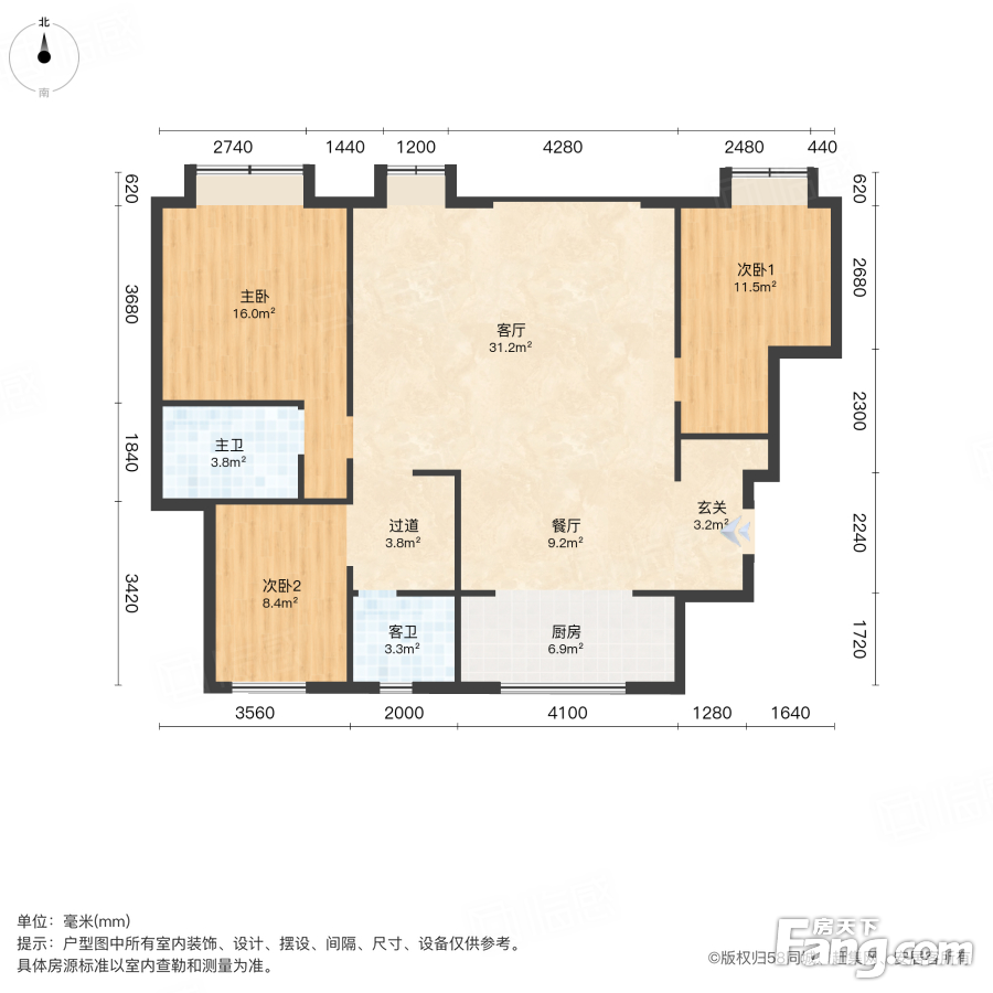 户型齐全,主打南北通透,全明格局三居