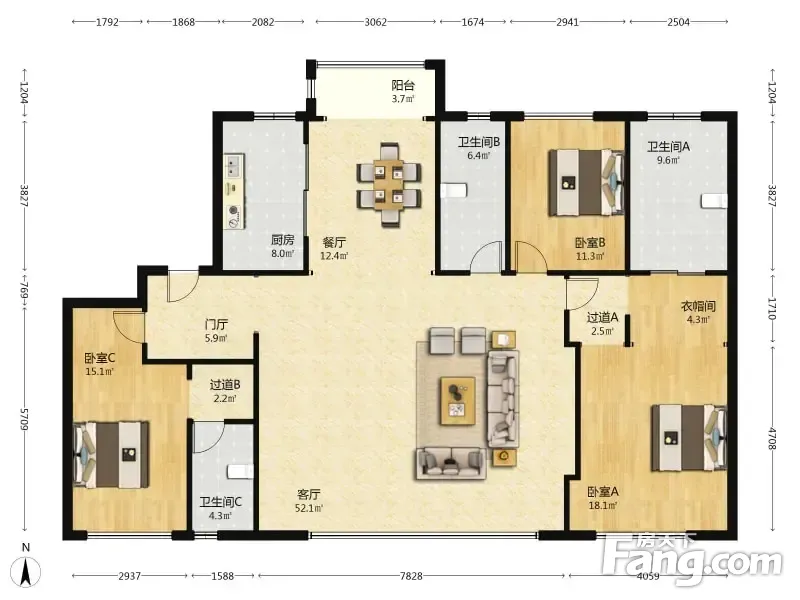 房屋拥有相对宽松的尺寸,布局通透,动静分离,设计豪华