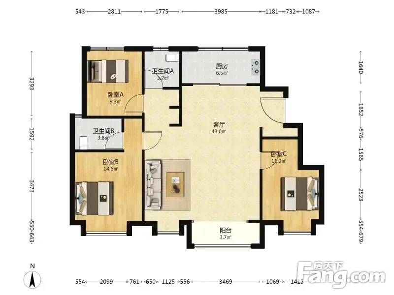 户型齐全,主打南北通透,全明格局三居