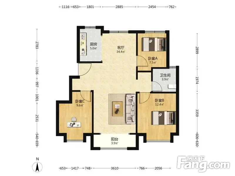 户型齐全,主打南北通透,全明格局三居