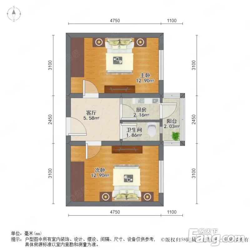 2室1厅1卫