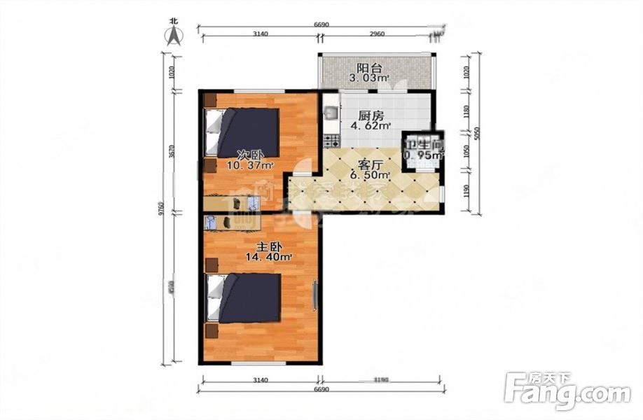 2室1厅 35.64平 南北