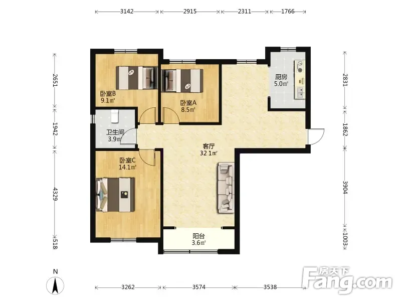 虹都名苑 3室1厅 107.94平