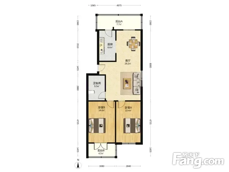 户型齐全,主打明卫,双阳台二居