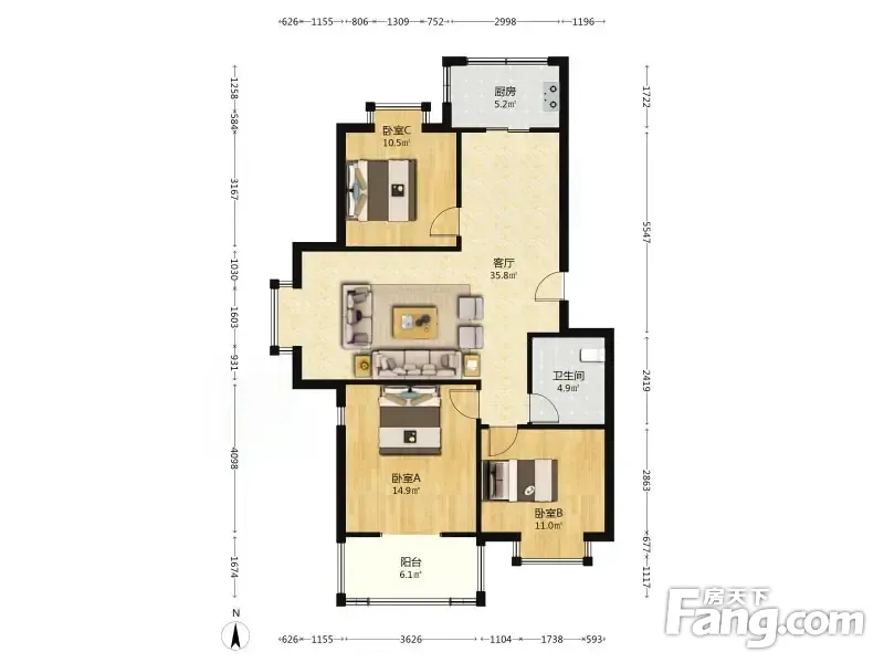 3室2厅1卫