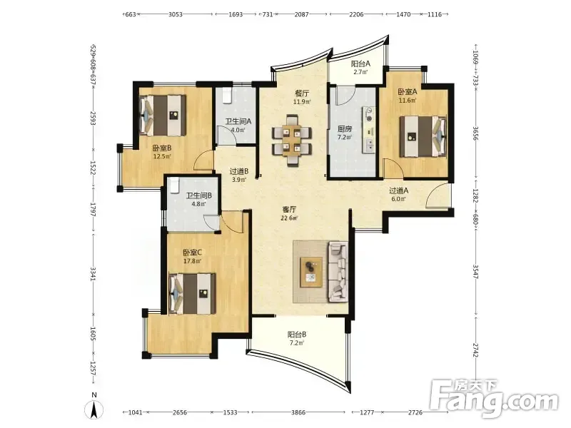 房屋拥有相对宽松的尺寸,布局通透,动静分离,设计豪华