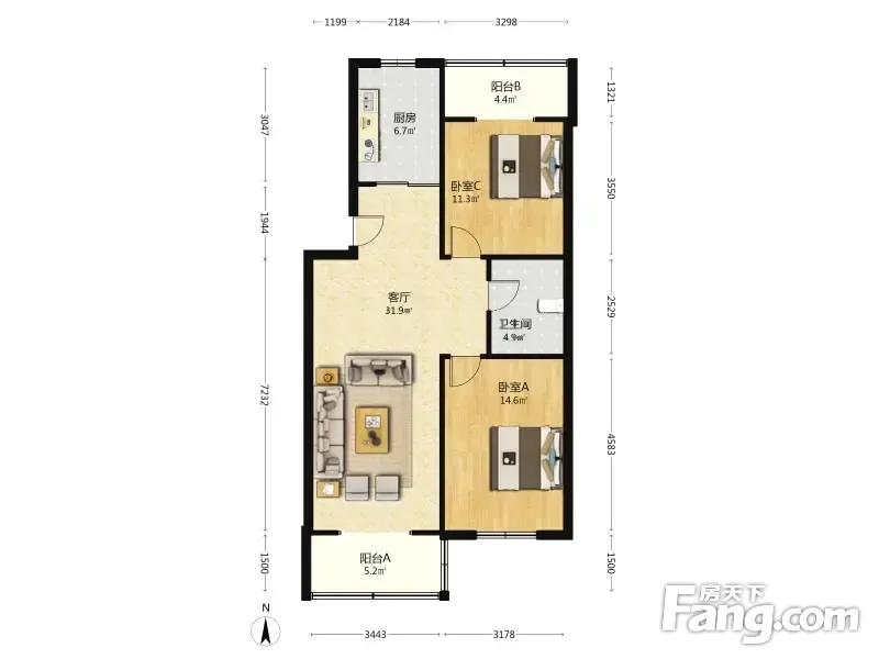 户型齐全,主打户型方正,客厅朝南,主卧朝南二居