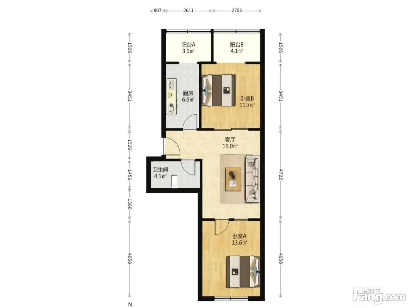 户型齐全,主打户型方正,客厅朝南,主卧朝南二居