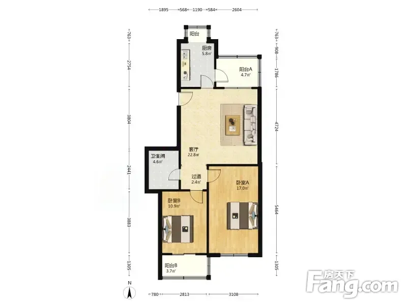 户型齐全,主打客厅朝南,双阳台,主卧朝南二居