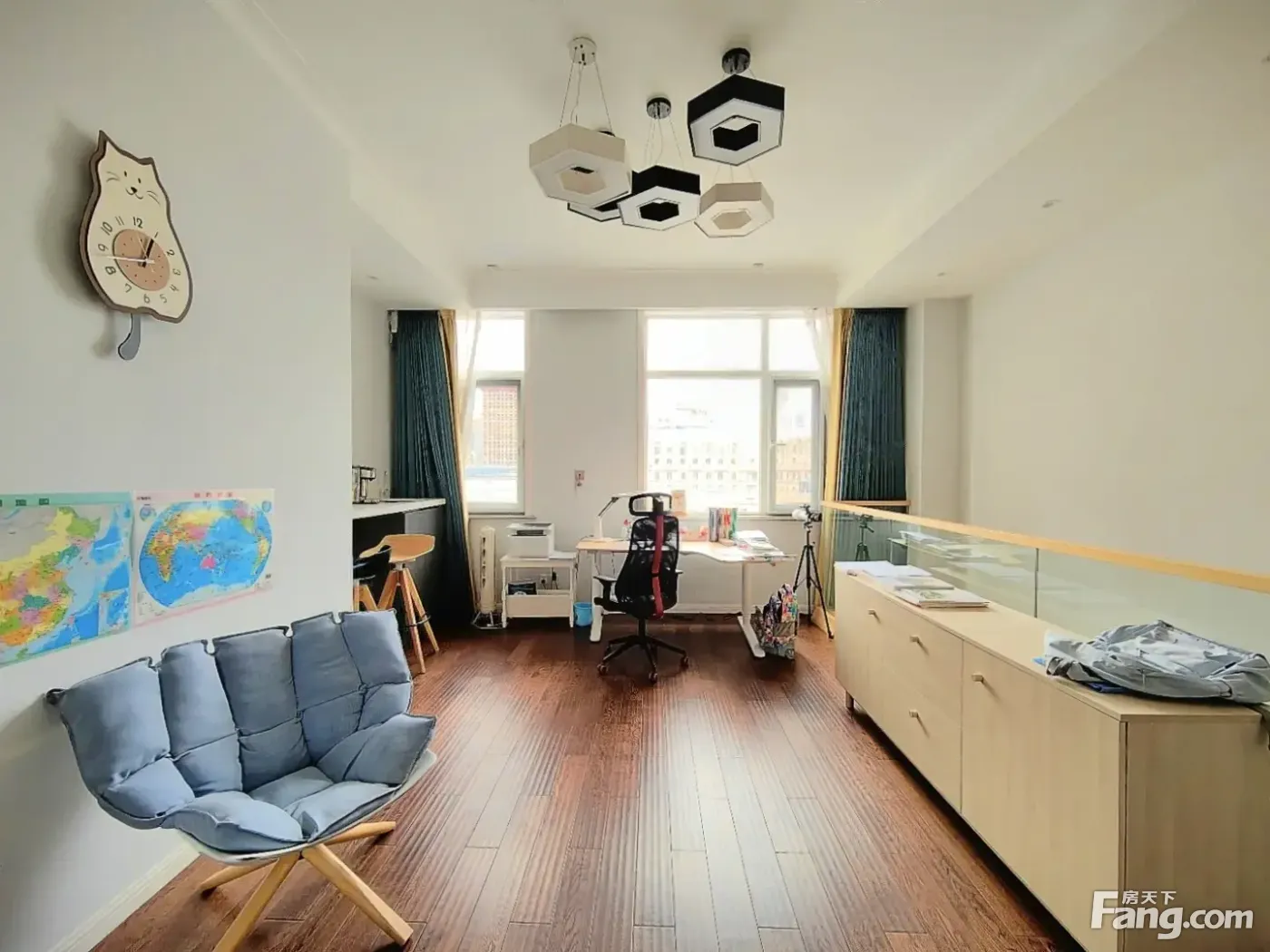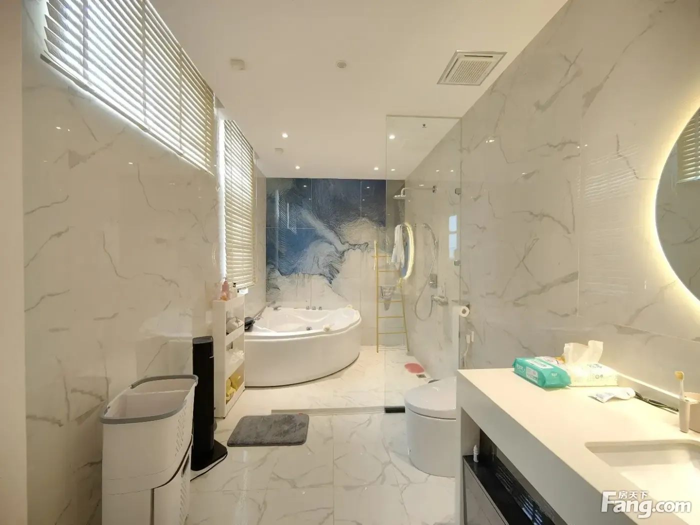 此房正规五室三卫 南北通透 两个阳面卧室都是标准房间 主卧室出台带卫生间 一个阴面卧室很方正,厨房有窗户,客卫很大干湿分离洗衣机洗脸盆互不影响。客厅宽敞明亮大气,整齐布局合理,无浪费面积,适合三代同堂居住,