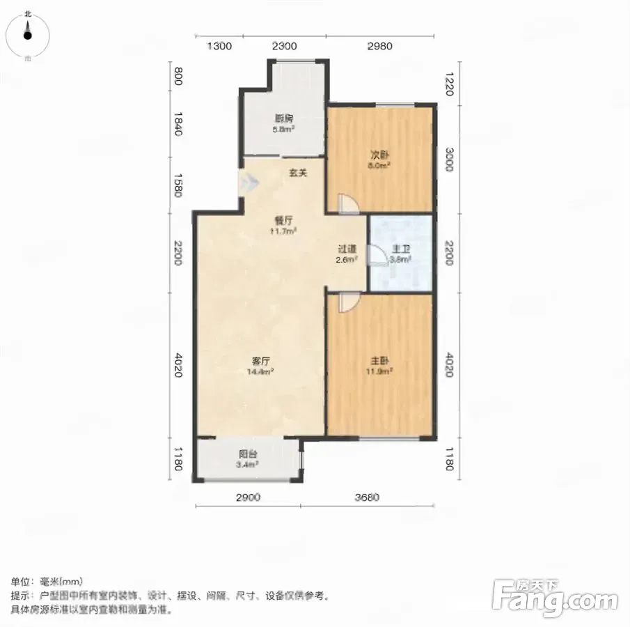 户型齐全,主打明厨,主卧朝南二居