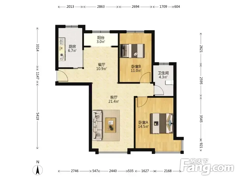 户型齐全,主打户型方正,明厨二居
