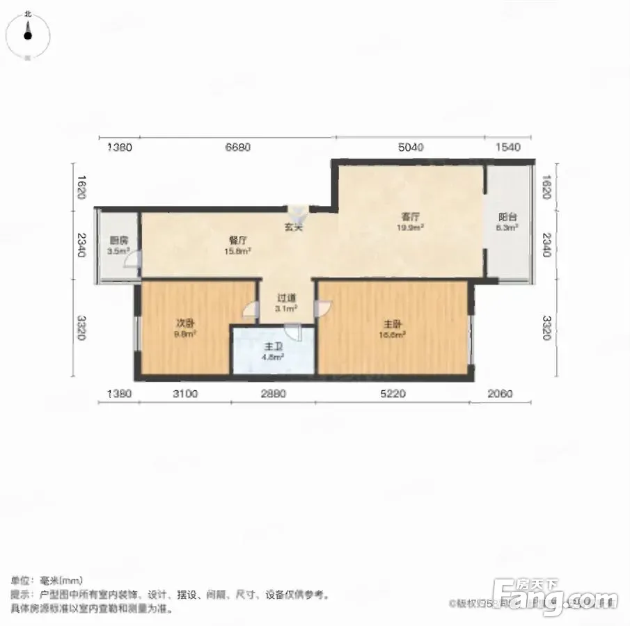 户型齐全,主打户型方正,明厨,主卧朝南二居