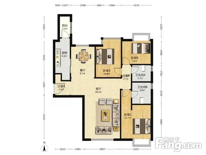 3室2厅1卫