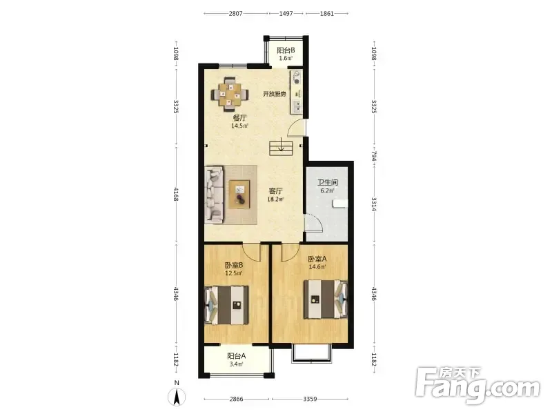 户型齐全,主打户型方正,客厅朝南,双阳台二居