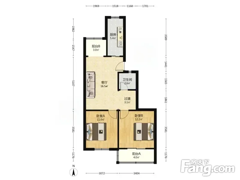 户型齐全,主打明卫,客厅朝南二居