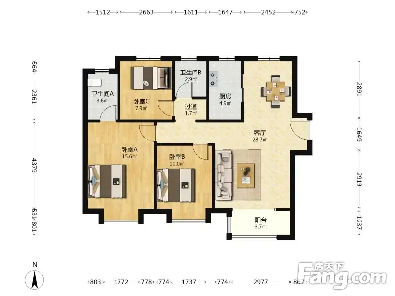 户型齐全,主打南北通透,全明格局三居