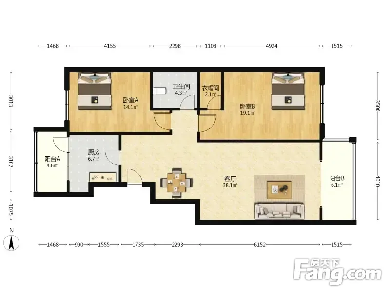 户型齐全,主打户型方正,明厨,双卧朝南三居