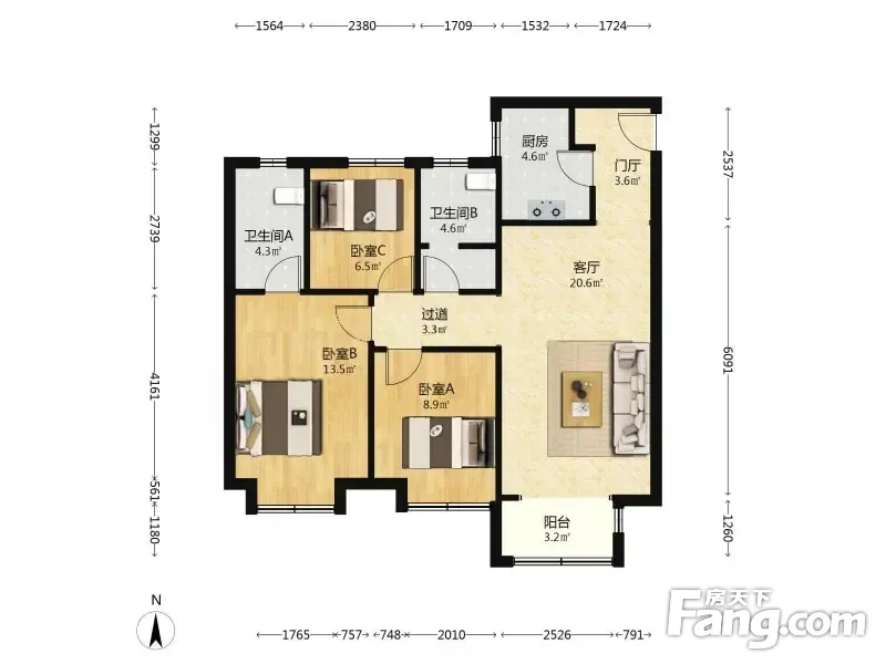 3室2厅1卫
