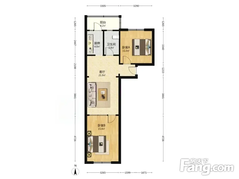 金厦里 四楼,2室1厅 74.47平