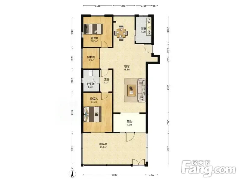 户型齐全,主打明厨,客厅朝南,户型方正,独立衣帽间二居