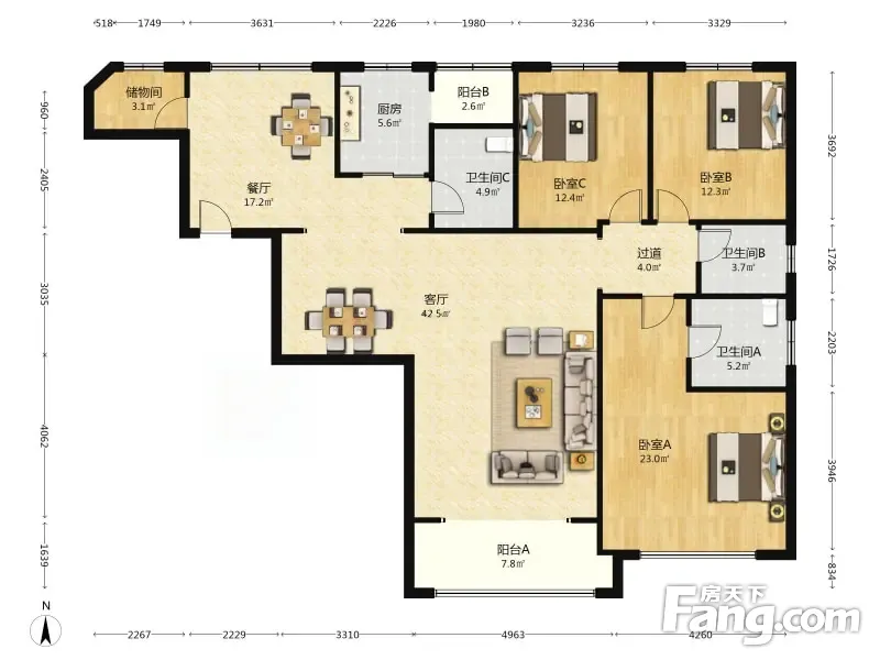房屋拥有相对宽松的尺寸,布局通透,动静分离,设计豪华