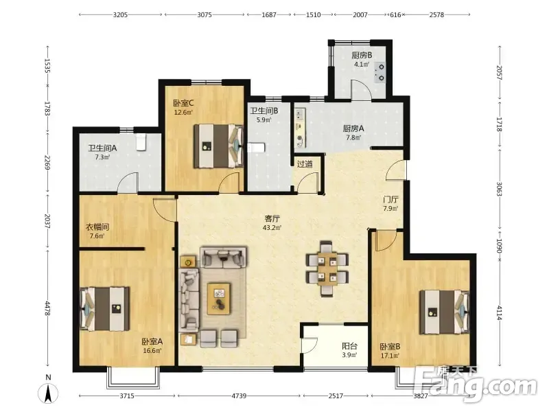 户型齐全,主打户型方正,明卫,客厅朝南,主卧朝南三居