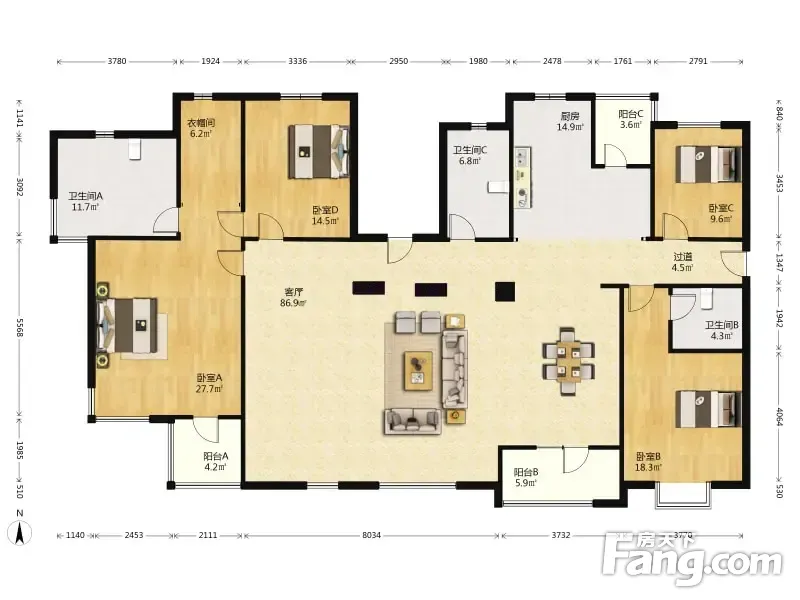 房屋拥有相对宽松的尺寸,布局通透,动静分离,设计豪华