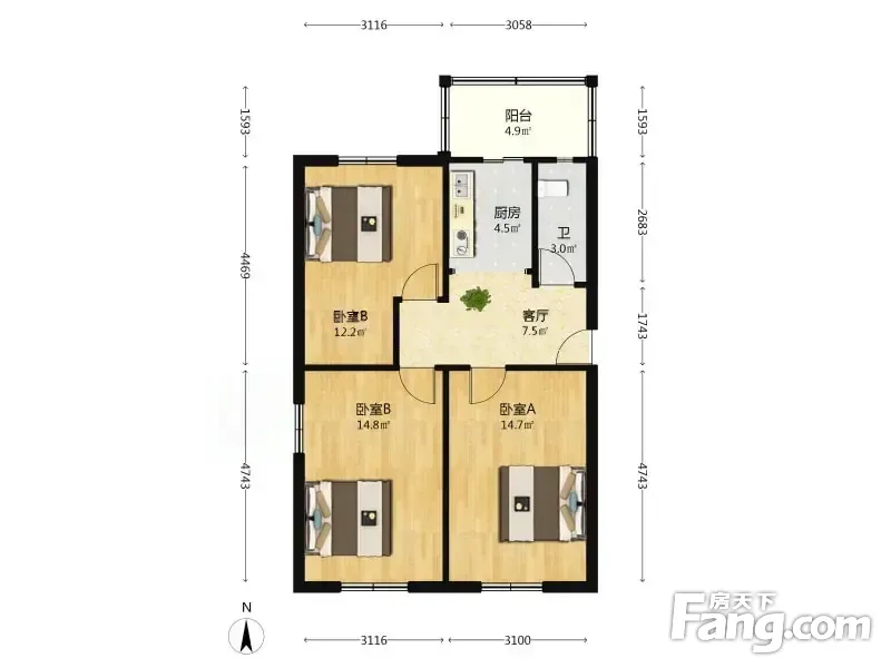 林苑北里 3室2厅 77.35平