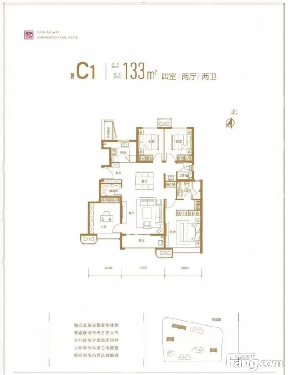 中国铁建西派国印户型主要有94平-125平的南北通透,全明格局,三开间朝南,主卧带卫,独立餐厅的三居 、133平-133平的南北通透,客厅朝南,卧室朝南的四居 。