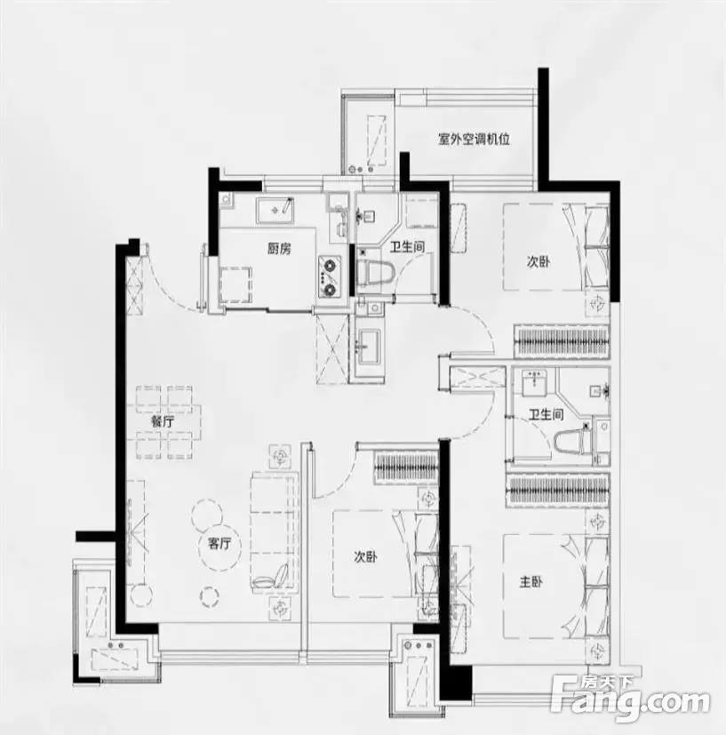 户型齐全,主打全明格局,户型方正三居