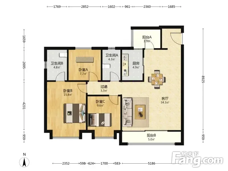 3室2厅1卫