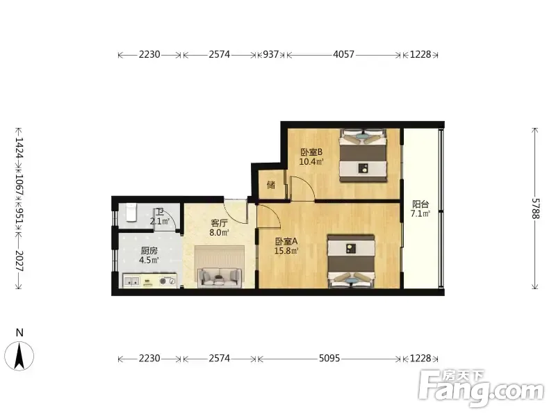 红和里 2室1厅 58.26平
