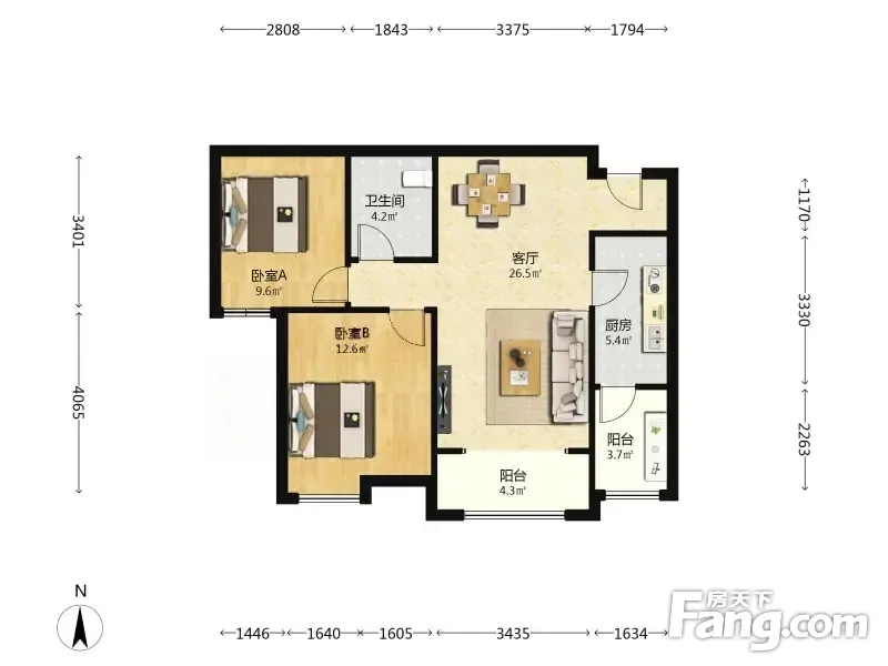 户型齐全,主打户型方正,明卫,客厅朝南,主卧朝南二居