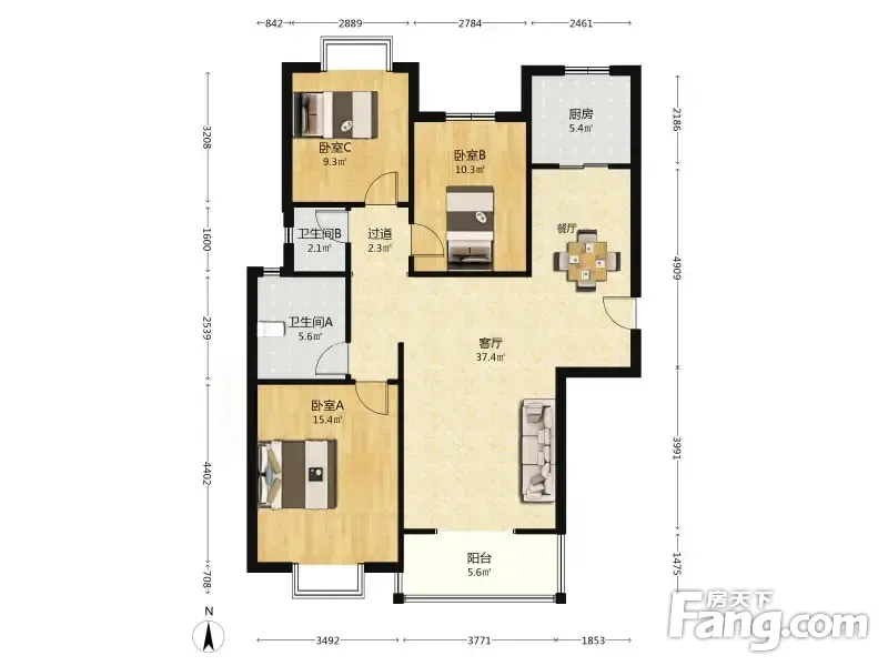 户型齐全,主打户型方正,明厨,明卫,双阳台,主卧朝南三居