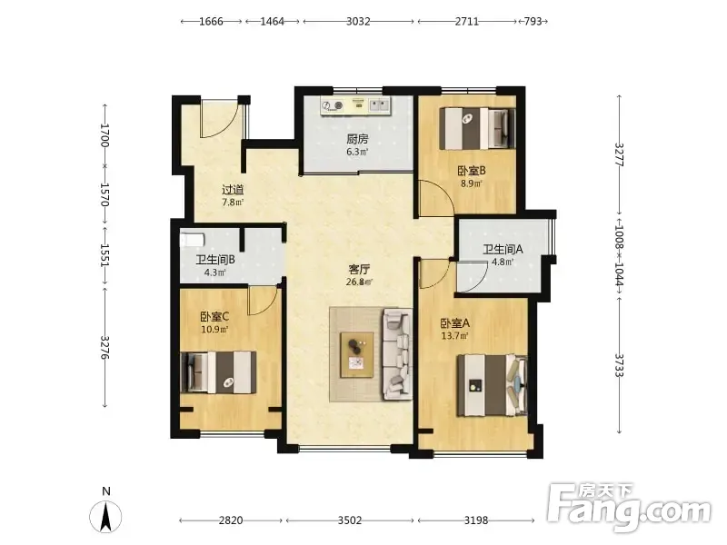 3室2厅1卫