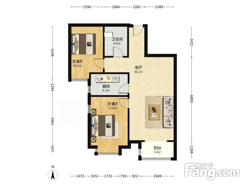 户型齐全,主打客厅朝南,主卧朝南一居