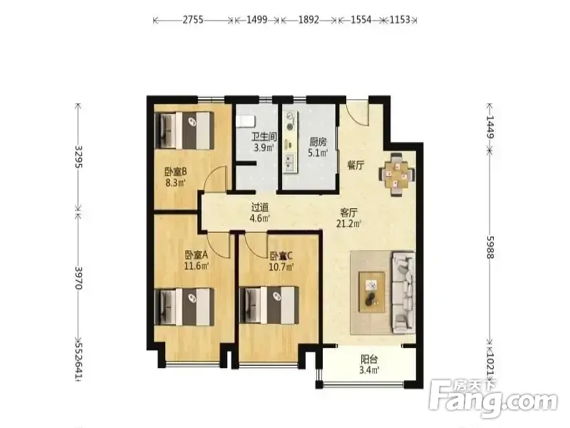 3室1厅1卫