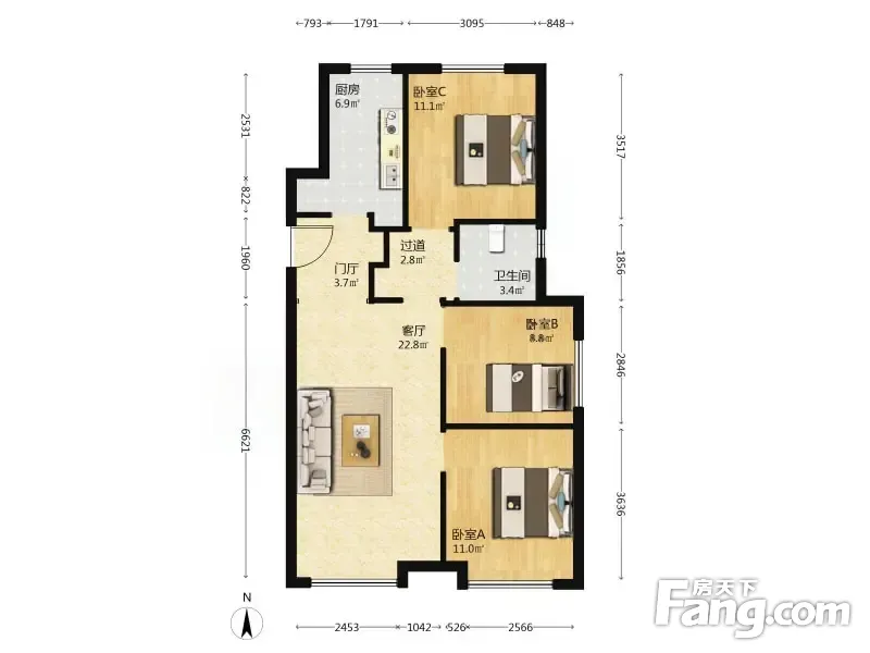 3室2厅1卫