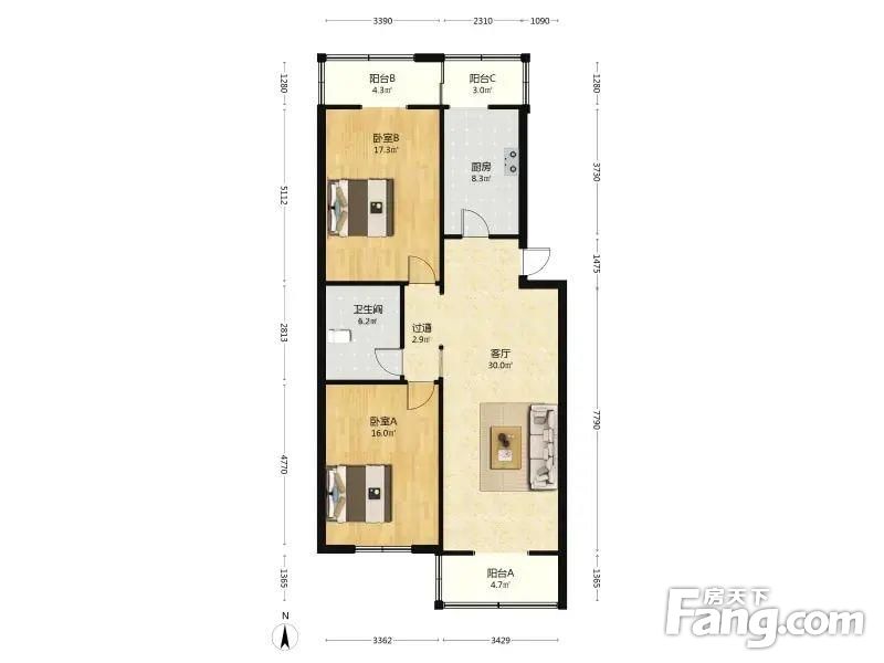 户型齐全,主打户型方正,双阳台,主卧朝南二居