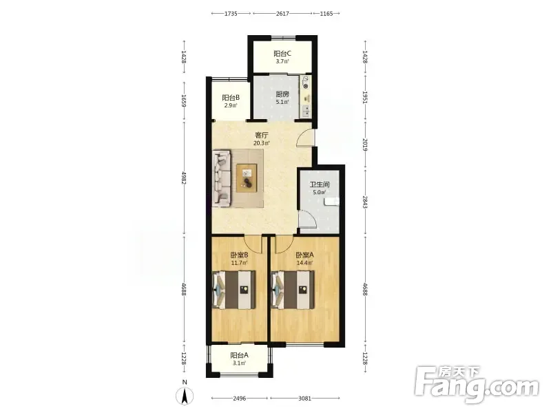 户型齐全,主打户型方正,明厨,双阳台二居