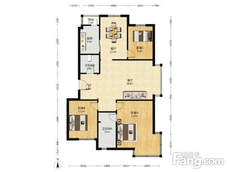 3室2厅1卫