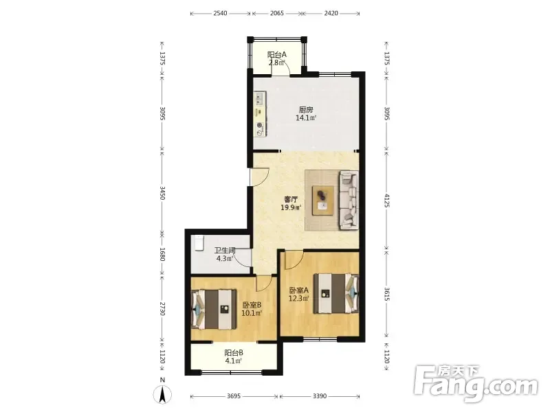 名都公寓 2室1厅 86.7平