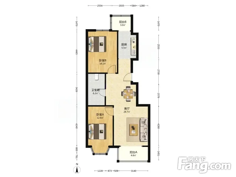 户型齐全,主打户型方正,双阳台二居