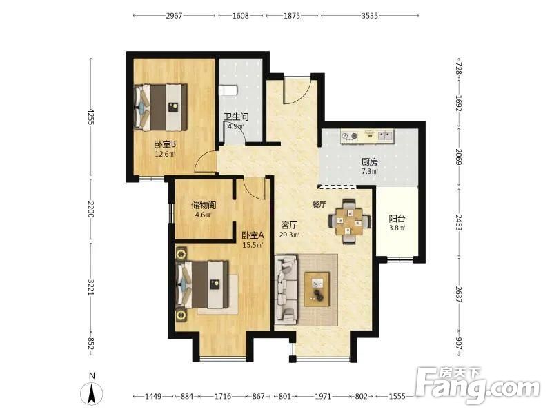 户型齐全,主打户型方正,客厅朝南,主卧朝南二居