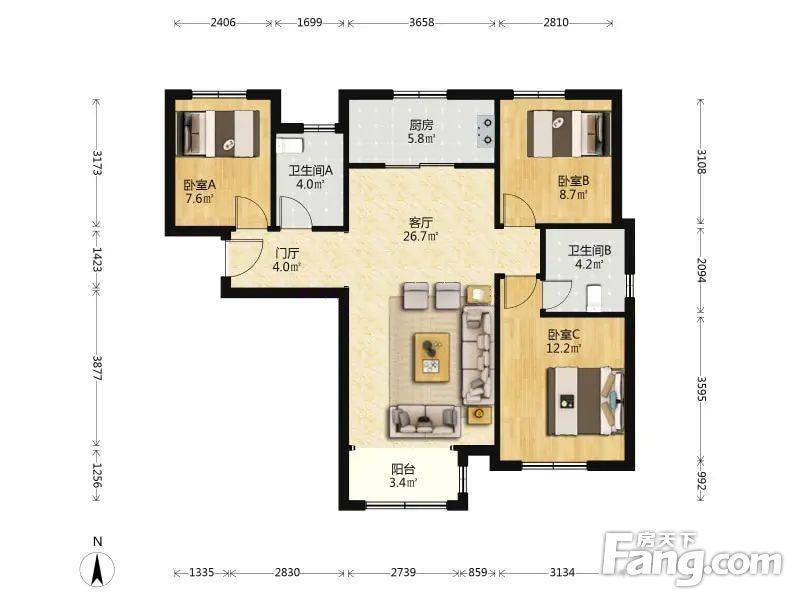 户型齐全,主打明卫,明厨,客厅朝南,全明格局,双卧朝南,主卧朝南三居