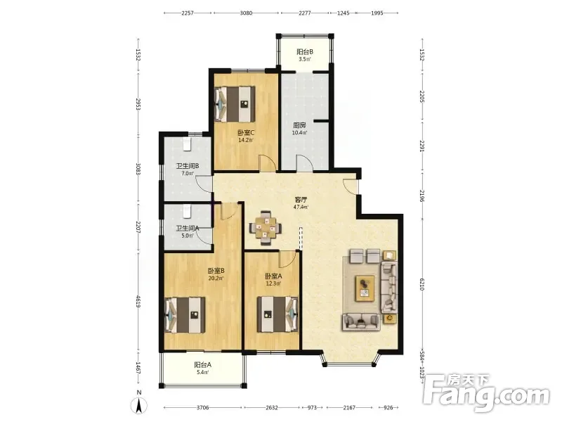 3室1厅2卫