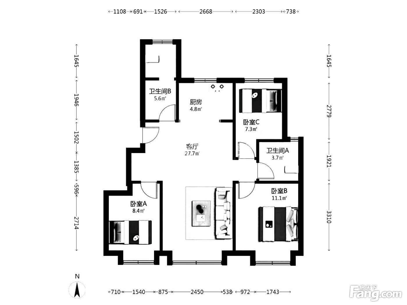 3室2厅1卫