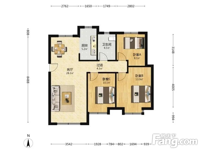 户型齐全,主打户型方正,明厨,明卫,主卧朝南三居