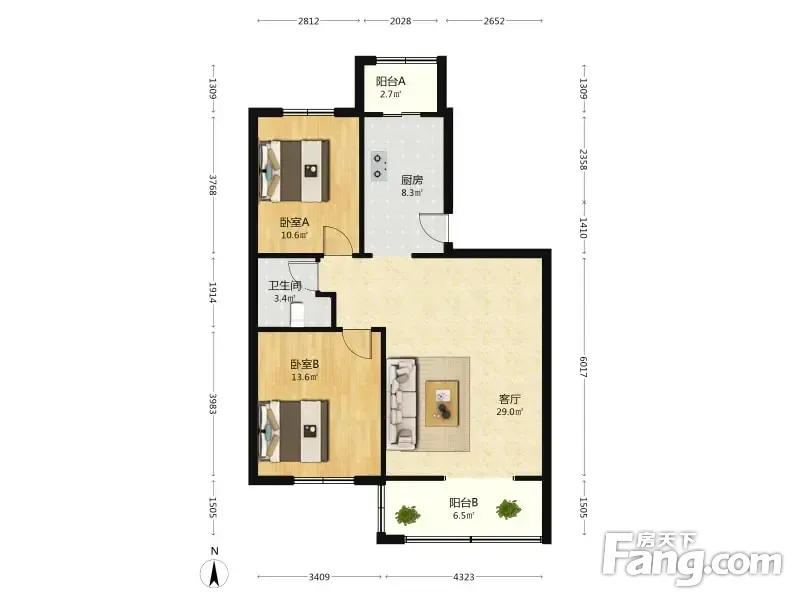 户型: ①2室2厅,朝向南北,美丽心殿主打蕞好2居户型,在售的户型不多,您不妨来看看,一定会让您喜欢。 ②户型方正,分布合理,使用率高,没有很长过道浪费面积,这也是您要考虑的一点。 ③通透性强,明厨明卫,装修都是用的环保材料,电路精心设置,适合居住。 ④楼层采光,观景都特别棒,一览小区景观。